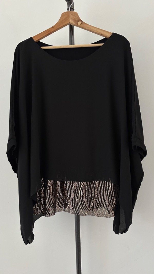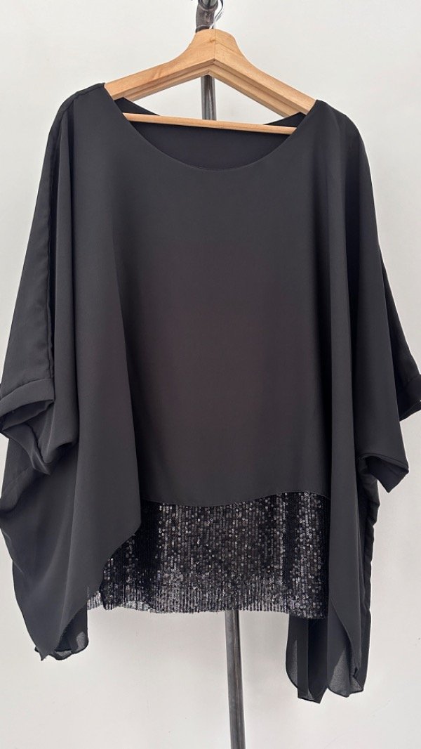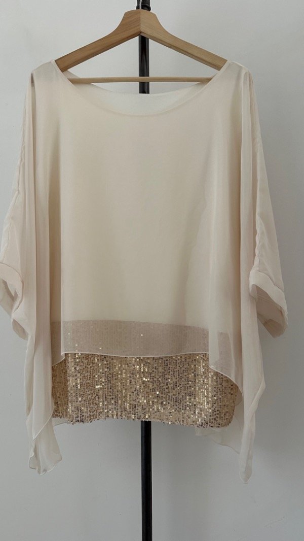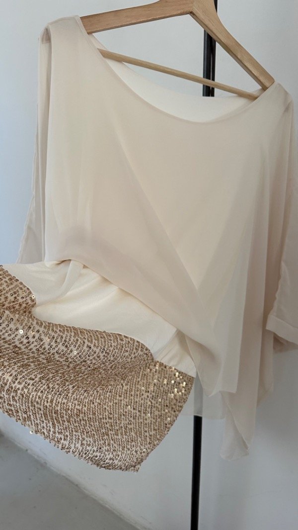 abajo lleva una musculosa de modal que en la parte de abajo tiene lentejuelas
